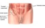 При ослаблении по разным причинам мышц брюшной полости появляется шишка в паху у мужчины. При разных физических усилиях или при кашле под кожу опускаются кишки, и возникает так называемый грыжевой мешок. Нарост может образовываться в любой стороне паховой области (как справа, так и слева). Основные симптомы грыжи: